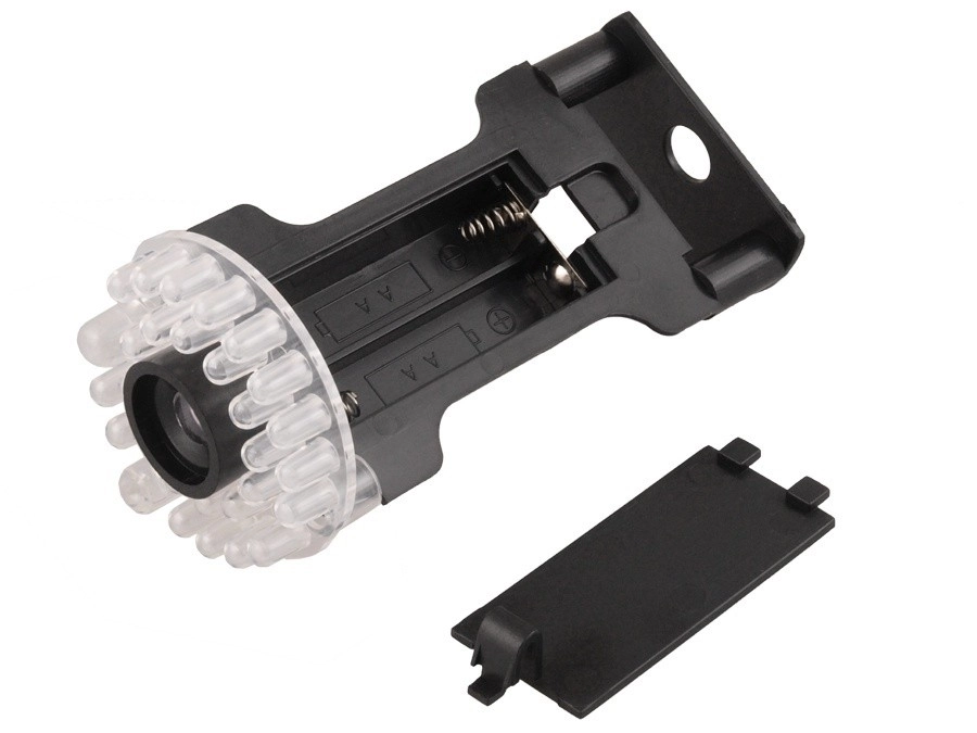 Integrovaná červená LED pravidelne bliká a simuluje aktívne nahrávanie. Napájanie zabezpečujú 2× AA batérie – žiadna zložitá kabeláž.