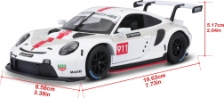 Model je opatrený realistickými potlačami a grafikou Porsche RSR, ktoré zdôrazňujú jeho závodný charakter. Gumené závodné pneumatiky a riaditeľné predné kolesá prispievajú k realistickému vzhľadu a funkčnosti modelu, čo z neho robí skvelý doplnok pre každého fanúšika automobilov.