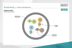 - Kábel je vyrobený a testovaný v súlade so špecifikáciami ISO/IEC 11801 triedy D a DIN EN 50173, čo garantuje vysokú prenosovú účinnosť a dodržanie príslušnej kategórie.