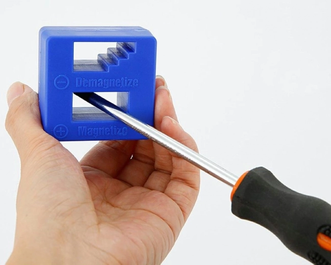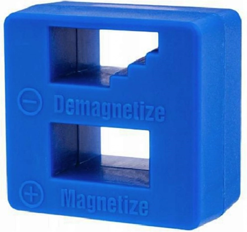 Efektívne demagnetizuje náradie a magnetizuje skrutkovače pred prácou na elektronike, aby uľahčil prácu v stiesnených priestoroch. Magnet zabudovaný v kocke vám tiež umožňuje očistiť pracovnú plochu od kovových úlomkov a pilín.