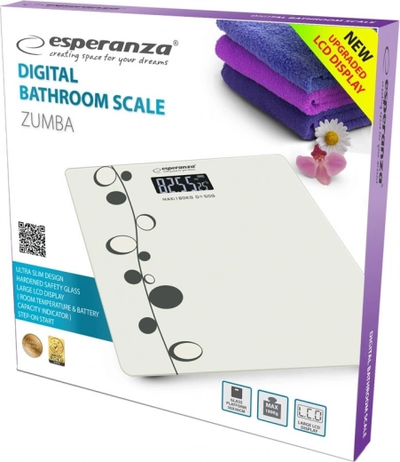 Ultra tenká elektronická váha ESPERANZA ZUMBA ponúka presné meranie, elegantný dizajn a jednoduché ovládanie. Vďaka odolnej sklenej platforme, veľkému LCD displeju a funkciám ako automatické vypnutie či signalizácia preťaženia a nízkej batérie je ideálna na každodennú kontrolu hmotnosti doma aj v zázemí fitness.