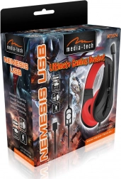 Headset MEDIATECH NEMESIS kombinuje moderný dizajn s funkčnou ergonómiou. Veľké náušníky z umelej kože s mäkkou výplňou zaručujú pohodlie aj pri dlhom používaní, zatiaľ čo polstrovaný most rovnomerne rozkladá tlak. Pripojenie cez USB poskytuje spoľahlivý, čistý digitálny prenos zvuku bez nutnosti zvukovej karty.