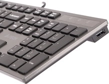 Vstavaný USB hub po oboch stranách klávesnice umožní jednoducho pripojiť myš, flash disk či ďalšie príslušenstvo bez siahania k počítaču.