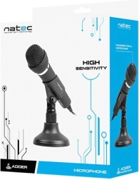 Mikrofón Adder je navrhnutý pre čistú reprodukciu zvuku bez rušivých šumov, s citlivosťou -55 dB.