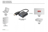 S týmto kompaktným adaptérom ľahko prepojíte moderné zdroje obrazu (notebooky, Blu‑ray/DVD prehrávače či herné konzoly) so staršími zobrazovačmi. Videosignál sa konvertuje z HDMI na analógové VGA, zatiaľ čo zvuk môžete vyviesť do reproduktorov alebo AV systému cez 3,5 mm mini jack.