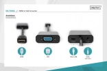Univerzálny adaptér DIGITUS prevádza signál HDMI na VGA a zároveň ponúka 3,5 mm audio výstup. Podporuje Full HD 1080p, funguje plug & play a nevyžaduje ovládače – ideálny na pripojenie notebookov, prehrávačov a herných konzol k starším monitorom a projektorom s VGA.