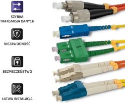 Vďaka konektorom LC/UPC–LC/UPC s bezpečným zacvakávacím mechanizmom získate jednoduchú inštaláciu, pevné spojenie a skvelú kvalitu signálu. Optické vedenie je imúnne voči elektromagnetickému rušeniu, neprodukuje iskrenie a je bezpečné na prevádzku v náročnom prostredí.