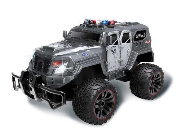 Objav rýchlosť a akčnú jazdu s RC autom S.W.A.T. Police Pioneer s dĺžkou 39 cm v mierke 1:12. Vďaka vyššiemu podvozku zvládne aj jazdu vo vyššej tráve, má svietiace majáky a svetlá s režimami, presné nastavenie priamej jazdy pomocou trimu a spoľahlivé napájanie s nabíjacím adaptérom. Skvelé prvé RC auto pre deti od 5 rokov.