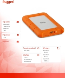 Externý disk LaCie Rugged USB-C 4TB je navrhnutý pre tých, ktorí hľadajú odolné úložisko s vysokou kapacitou. Jeho kompaktná konštrukcia s rozmermi 86 mm x 135,1 mm x 26 mm a hmotnosťou len 400 g umožňuje jednoduché prenášanie. S kapacitou 4 TB budete mať dostatok priestoru pre všetky súbory, vrátane fotografií, videí a dokumentov.