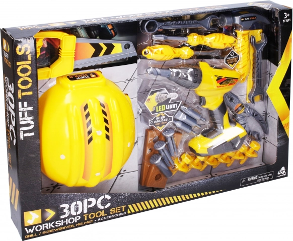 Objavte detský set náradia s prilbou od značky Tuff Tools - ideálny balíček pre malých opravárov, ktorí chcú objavovať svet náradia a opráv!