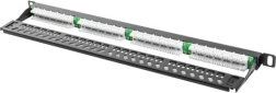 Vďaka 24 neekranovaným portom RJ-45 kategórie Cat.5e je ideálny pre dátové a telekomunikačné aplikácie. Univerzálne svorky IDC/LSA kompatibilné so štandardmi T568A/B umožňujú rýchlu a bezpečnú inštaláciu, zatiaľ čo priložený organizér káblov drží vedenie pevne a esteticky.