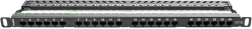 Profesionálny patch panel pre 19" rack s 24 portami RJ-45 kategórie Cat.5e a výškou 0.5U. Ponúka rýchlu a prehľadnú správu kabeláže, číslované porty pre jednoduchú orientáciu a IDC/LSA svorky kompatibilné s T568A/B pre rýchlu inštaláciu. Súčasťou je organizér káblov a odolné čierne vyhotovenie RAL9004.