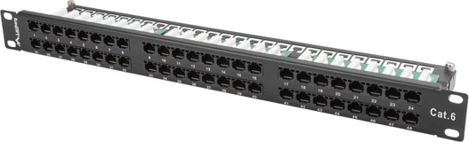 Patch panel umožňuje efektívne usporiadanie a správu káblov vďaka 48 portom kategórie 6.