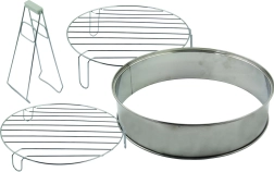 V balení nájdete rošty pre rôzne výšky, odkvapkávaciu misku a praktický zdvihák. Rozširovací krúžok pridá ďalších 6 litrov objemu, takže upečiete aj väčšie kusy mäsa či celé kurča.