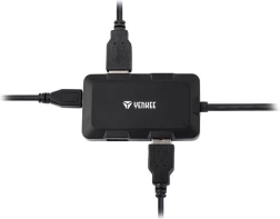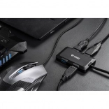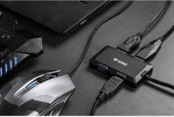 USB hub rozširuje váš počítač o 4 dodatočné USB porty pre pripojenie periférií, ako je myš, klávesnica alebo externé pevné disky. Ponúka maximálny nabíjací prúd 2,4 A na jeden port pri využití externého zdroja energie (nie je súčasťou balenia).