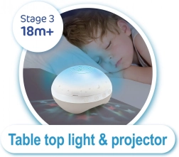 Projektor premieta hviezdičky a prehráva 6 melódií a 4 zvuky prírody, ktoré pomáhajú bábätku rýchlejšie zaspať.