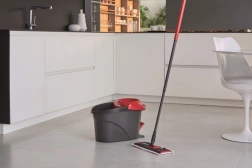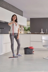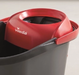 Vedro so šliapacím pedálom a novo navrhnutým sitkom umožňuje dôkladné odsatie vody a kontrolu vlhkosti mopu – rýchlo, pohodlne a bez kontaktu so špinavou vodou.