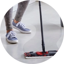 Návlek zo 100% mikrovlákna kombinuje dva typy vlákien pre maximálnu účinnosť – biele mikroaktívne vlákna zachytávajú jemný prach a mastnotu, zatiaľ čo červené vlákna Vileda rýchlo pozbierajú jednotlivé nečistoty a omrvinky. Otočný kĺb 180° a nízky profil sa ľahko dostanú pod nábytok a do ťažko prístupných miest.