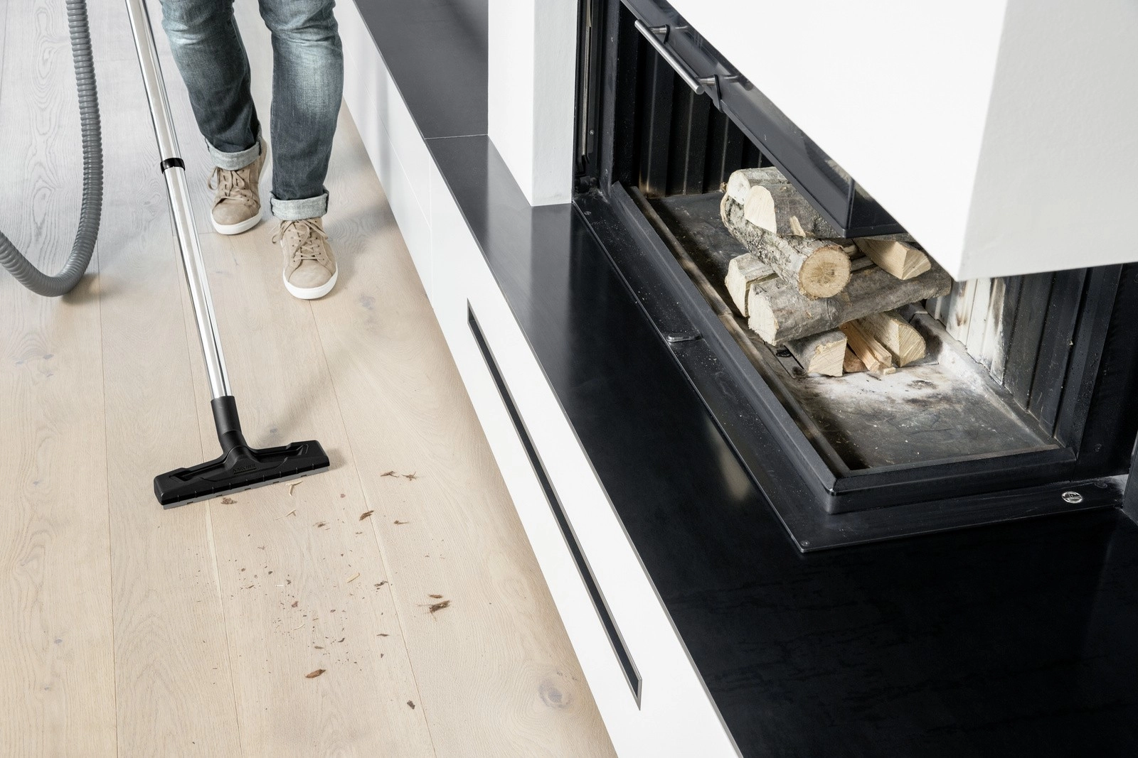 Odstraňovanie popola z krbov, sporákov a grilov môže byť veľmi problematické. Výsledky čistenia väčšinou nie sú uspokojivé, pretože prach, ktorý sa víri okolo, sa usádza na všetkom v okolí. Kärcher má pre tento problém ideálne riešenie – krbový vysávač, ktorý rýchlo a účinne odstraňuje studený popol. Inovatívna filtračná technológia s oddeleným veľkým filtrom na nečistoty a plochým skladaným filtrom zaisťuje maximálnu bezpečnosť používateľa a trvalo vysoký sací výkon. Model AD 4 Premium je možné v kombinácii s podlahovou hubicou používať aj ako špičkový vysávač na suché vysávanie.