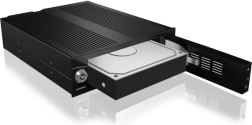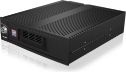 Podporuje 3,5″ SATA HDD (SATA I/II/III) s výškou do 1″ a vďaka backplane konektoru NSS (Non‑Scratch SATA) ponúkne rýchlosti až 6 Gb/s a až 50 000 bezproblémových cyklov zasunutia a vybratia. Inštalácia je bez ovládačov, nechýba podpora Hot Swap a Plug & Play, LED indikácia napájania/aktivity, gumené tlmiace podložky proti vibráciám ani mechanický zámok proti neoprávnenému prístupu.