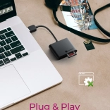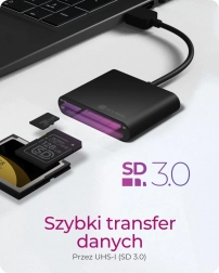Kompaktná čítačka pamäťových kariet IB‑CR301‑U3 s rozhraním USB 3.0 ponúka rýchle čítanie a zápis na rôzne typy kariet. Vďaka prenosovej rýchlosti až 5 Gbit/s ľahko a rýchlo skopírujete fotky, videá aj dokumenty medzi kartou a počítačom.