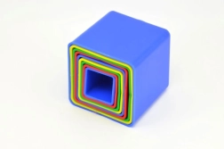Deväť farebných plastových kociek pre najmenších podporuje rozvoj jemnej motoriky, logického myslenia a koordinácie oko–ruka. Duté kocky možno skladať do veže aj vkladať do seba, najväčšia má 9 × 9 × 9 cm. Vhodné od 1 roka, vyrobené v ČR. Farebné prevedenie je v mixe farieb podľa skladových zásob.
