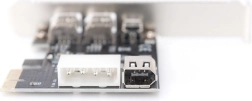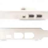 Dve externé zásuvky umožnia okamžité pripojenie periférií, zatiaľ čo interný konektor poslúži na vedenie do predného panelu alebo interné FireWire zariadenia. Integrované 4‑pin napájacie pripojenie dodá portom dodatočný výkon pre energeticky náročné periférie.