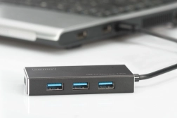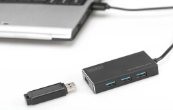 Rozšírte konektivitu svojho notebooku či PC pomocou 4-portového USB 3.0 hubu DIGITUS. Umožní súčasne pripojiť klávesnicu, myš, flash disk, čítačku kariet aj ďalšie periférie a zachová vysokú rýchlosť prenosu dát až 5 Gbit/s.