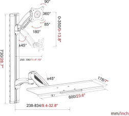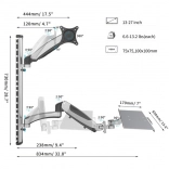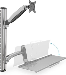 Výkonné nástenné rameno umožňuje inštaláciu monitora alebo televízora a klávesnice, čím zabezpečuje maximálnu flexibilitu a komfort v práci či domácom prostredí. Je vybavené otvormi v štandarde VESA (75x75, 100x100), čo umožňuje montáž monitorov do 27" a hmotnosti do 8 kg. Rameno dokáže monitor otáčať o 360 stupňov a ponúka rozšírené možnosti horizontálneho a vertikálneho nastavenia. Navyše je vybavené integrovaným systémom pre správu káblov, čo zabezpečuje čistý a organizovaný priestor. Je vyrobené z kvalitných materiálov so sivou práškovou úpravou.