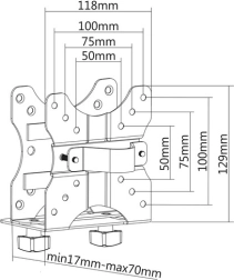 Môže byť pripojený aj zospodu pracovnej dosky alebo iného nábytku. Tento držiak je vhodný pre mini počítače o hrúbke 17 až 70 mm a hmotnosti do 5 kg.