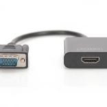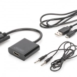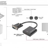 Konverzia analógového signálu VGA na digitálny signál HDMI vám umožňuje prepojiť zariadenia disponujúce iba VGA výstupom napríklad s monitorom, televízorom alebo projektorom s HDMI vstupom. Pretože VGA vstup môže prenášať iba video signál, je konvertor vybavený aj audio konektorom 3,5 mm. To zabezpečuje, že akékoľvek možné stereo signály sú tiež konvertované a integrované do HDMI videa, a preto je ich prehrávanie po HDMI možné napríklad na vašom televízore.