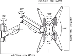Nástenný držiak Maclean MC-784 je navrhnutý pre maximálnu pružnosť a pohodlie pri nastavovaní uhlov sledovania. Vďaka plynovej pružine môžete ľahko prispôsobiť polohu obrazovky podľa svojich preferencií: