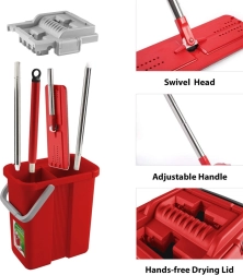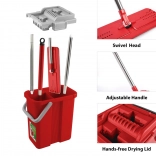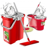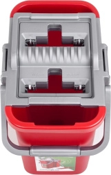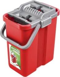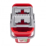Robustné plastové vedro so stabilnou rukoväťou a integrovaným žmýkacím mechanizmom zabezpečuje bezpečné prenášanie a kontrolované odkvapkávanie bez špliechania.