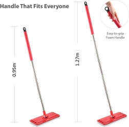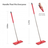 Súprava je vyrobená z odolného plastu a je pripravená pre rôzne povrchy vrátane drevených podláh, dlažby a keramiky. Teleskopická tyč s rozsahom 95–127 cm sa prispôsobí vašej výške aj typu upratovania. V balení sú 2 náhradné mikrovláknové návleky, ktoré účinne zachytávajú prach aj zaschnutú špinu a ľahko sa udržiavajú.