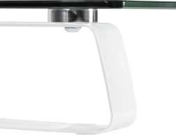 Číre 5 mm sklo s minimalistickými líniami vizuálne odľahčí stôl a zároveň vytvorí priestor pod podstavcom pre klávesnicu či dokumenty.