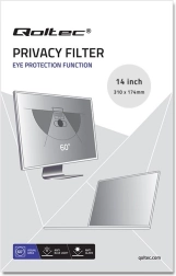 Filter na ochranu súkromia QOLTEC účinne zabraňuje neželaným pohľadom z boku, takže obsah obrazovky zostáva v bezpečí aj v open space, na cestách alebo v priestoroch s klientmi. Pokročilé mikrožalúzie zabezpečujú pohodlné čítanie spredu približne v rozsahu 60°, pričom už od ~30° sa obraz výrazne stmaví a stáva sa nečitateľným. Matný, antireflexný povrch navyše eliminuje odlesky a blokovanie modrého svetla znižuje únavu očí počas dlhej práce.