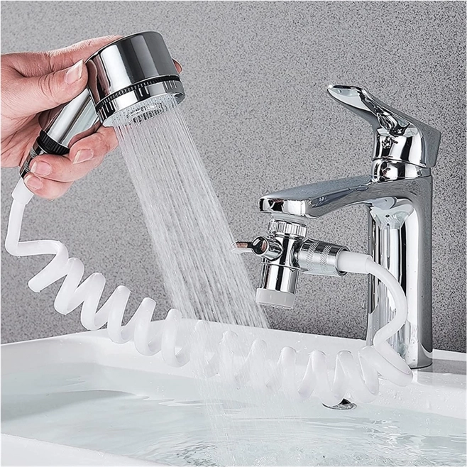 Všetko, čo musíte urobiť, je pripojiť súpravu k bežnej batérii! Súprava obsahuje aj špeciálny držiak na montáž a zavesenie batérie na stenu. Flexibilná a dostatočne dlhá hadica so sprchovou hlavicou je vhodná na rôzne použitie v kuchyni a kúpeľni. Môžete ju použiť na umývanie vlasov nad umývadlom, ako bidet alebo na kúpanie dieťaťa v detskej vaničke. S ručnou sprchovou hlavicou, ktorá je ľahká, ergonomicky prispôsobená a veľmi pohodlne sa drží, môžete umývať riad jemným prúdom vody.