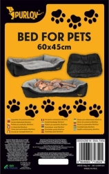 Pelech Purlov s rozmerom 60 × 45 cm (vonkajší 65 × 50 × 13 cm) je navrhnutý pre pohodlný spánok menších a stredne veľkých plemien. Hebký sivý vnútro a odolné čierne bočnice zabezpečujú komfort, oporu a dlhú životnosť. Vďaka nízkemu nástupu sa do pelechu ľahko dostanú aj šteniatka a staršie zvieratá.