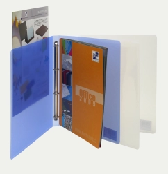 Tento číry krúžkový zakladač je navrhnutý na profesionálnu prezentáciu aj každodenné kancelárske použitie. Extra silný polypropylén chráni obsah pred nečistotami a vlhkosťou, zatiaľ čo priehľadné predné vrecko umožňuje ľahko vložiť titulný list alebo firemné logo.