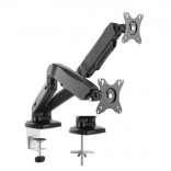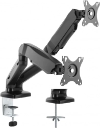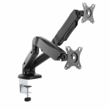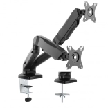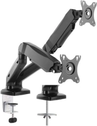 Elegantný dvojitý držiak monitorov pre uhlopriečky až 32" uvoľní miesto na stole a zlepší ergonómiu práce. Vďaka plynovým ramenám ponúka plynulé nastavenie výšky, otočenie a náklon, má integrovanú správu káblov a rýchlu montáž vďaka hruškovitému VESA.