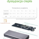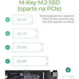 Inštalácia je jednoduchá a rýchla, puzdro podporuje disky s kľúčom M‑Key a dĺžkami 2230/2242/2260/2280. Nechýba LED pre stav napájania a aktivity a tiež praktický prepínač ochrany proti zápisu, ktorý zabráni nechceným úpravám alebo vymazaniu dát.