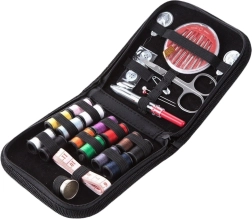 V súprave nájdete pestrý výber pomôcok na bežné šitie: farebné niti, viacero ihiel, nožnice, parátko/odpárač na nite, zatváracie špendlíky, gombíky, meter, prípadne drobné príslušenstvo na jednoduchšie navliekanie a značenie. Vďaka tomu je súprava vhodná pre začiatočníkov aj skúsených používateľov.