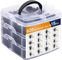 Sada automobilových úchytiek obsahuje 620 prvkov v štandardných veľkostiach, čo ju robí nepostrádateľným nástrojom v každej dielni alebo garáži. Trojúrovňový organizér umožňuje jednoduché usporiadanie a rýchly prístup k úchytkám.