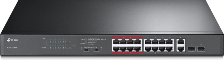 Prepínač 16-portový PoE+ TL-SL1218MP s gigabitovými portami RJ45 a SFP slotmi