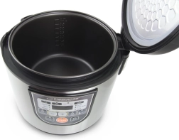 Multifunkčné varenie: Tento multicooker vám umožní pripraviť vaše obľúbené pokrmy rýchlejšie a zdravšie. Vďaka jednoduchému a intuitívnemu LCD displeju je možné ľahko nastaviť funkcie varenia a prispôsobiť ich čas vašim potrebám.