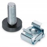 Kombinácia M6 skrutiek s krížovou hlavou, klietkových matíc a podložiek zabezpečuje isté a opakovateľné upevnenie komponentov v rackových lištách bez poškodenia povrchu.