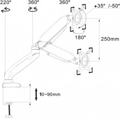 Vylepšite svoj pracovný priestor vďaka držiaku monitoru s plynovou pružinou, ktorý umožňuje jednoduché a plynulé nastavenie polohy obrazovky. Ideálny pre LCD/LED monitory o veľkosti 10-32".