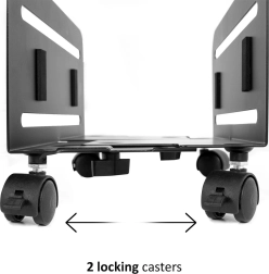 Štyri odolné kolieska zabezpečujú plynulý pohyb po kancelárii aj doma, zatiaľ čo dve brzdy udržia počítač pevne na mieste pri práci.