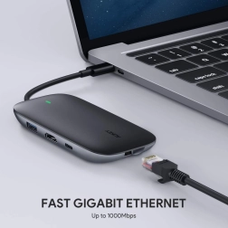 Aukey CB-C71 poskytuje rýchlosť prenosu dát 5 Gb/s a vďaka rozhraniu HDMI nebude odosielanie rozlíšenia až 4K @ 30 Hz na pripojený displej žiadny problém. Gigabitový ethernetový port navyše podporí sieťové rýchlosti až 1 000 Mb/s. Môžete tiež bez problémov nabíjať svoje obľúbené zariadenia. Vďaka technológii Power Delivery môže byť váš notebook napájaný výkonom 100 W, aj keď používate iné funkcie rozbočovača. Nabíjanie ešte nikdy nebolo také rýchle – na taký vysoký štandard prevádzky si iste zvyknete od prvého dňa a Aukey CB-C71 sa pre vás stane neoceniteľnou (a nenahraditeľnou!) oporou.