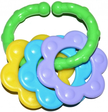 Pestré hryzadlo pre bábätká so 4 tvarmi. Vhodné od 0 mesiacov. Bezpečné a zábavné!